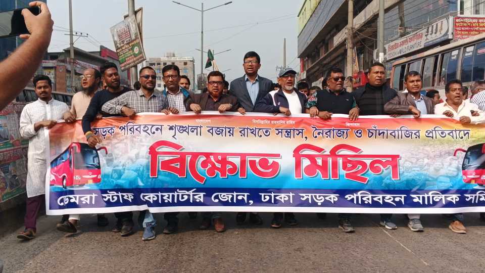 এম রাসেল সরকার: রাজধানীর ডেমরা স্টাফ কোয়ার্টার পরিবহন সেক্টরে চাঁদাবাজির বিরুদ্ধে বিক্ষোভ মিছিল অনুষ্ঠিত হয়।