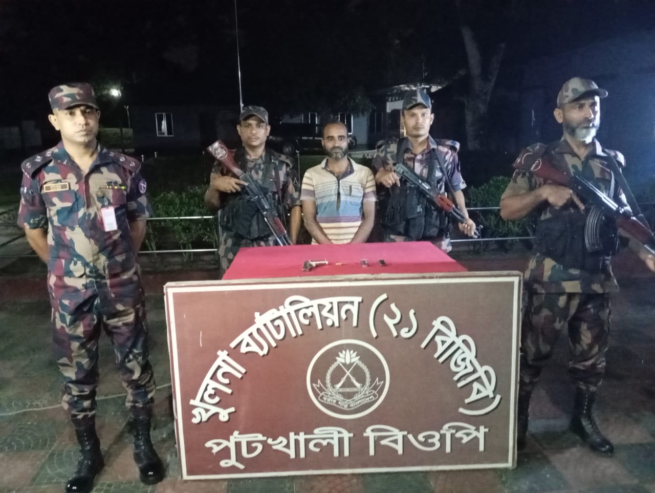 বিজিবি জানান, পুটখালী বিওপির একটি টহলদল সীমান্তের মেইন পিলার ১৭/০৭ এস এর ১৬২ আর পিলার হতে ৩০০ গজ বাংলাদেশের অভ্যন্তরে পুটখালী উত্তর পাড়া নামক স্থান ১টি ইতালি তৈরি পিস্তল, ২টি ম্যাগাজিন ও ৫ রাউন্ড গুলি সহ আক্তারুল ইসলামকে আটক করা হয়।